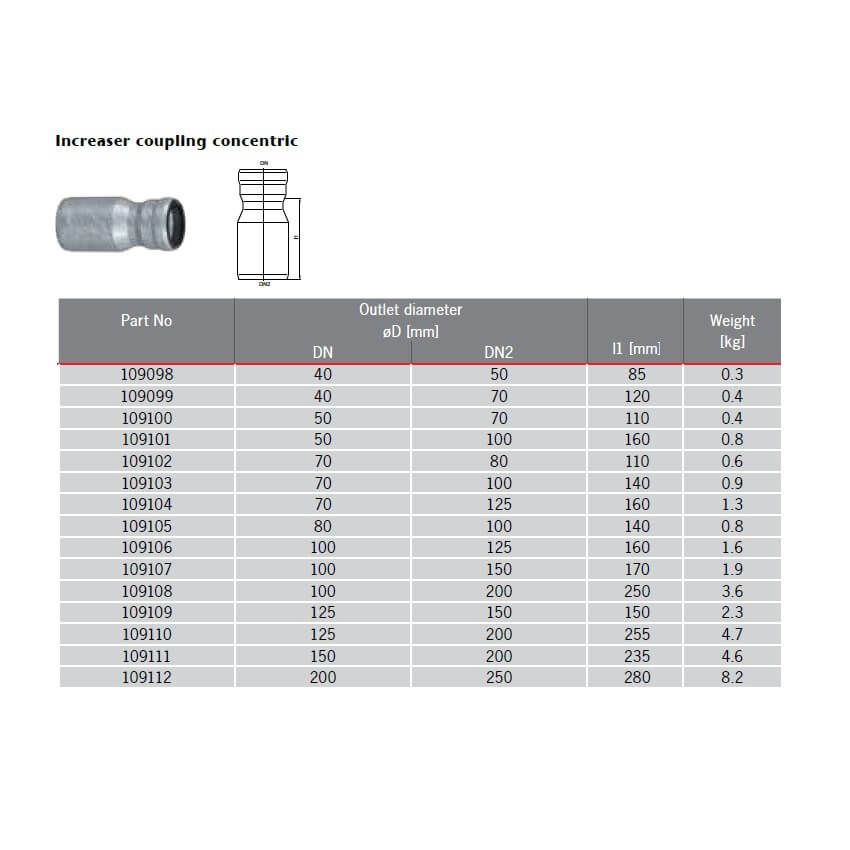 ACO GM-X Galvanised Steel Increaser Coupling Concentric without Socket, available in 2no. rainwater drainage pipe diameters.