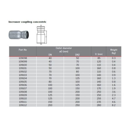 ACO GM-X Galvanised Steel Increaser Coupling Eccentric, available in 7no. rainwater drainage pipe diameters.
