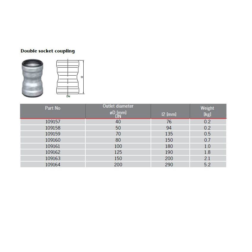 ACO GM-X Galvanised Steel Double Socket Coupling, available in 8no. rainwater drainage pipe diameters.