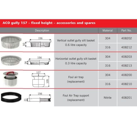 ACO Hygienic Stainless Steel Gully 157 - Fixed Height Horizontal 110mm Outlet Top Size 200
