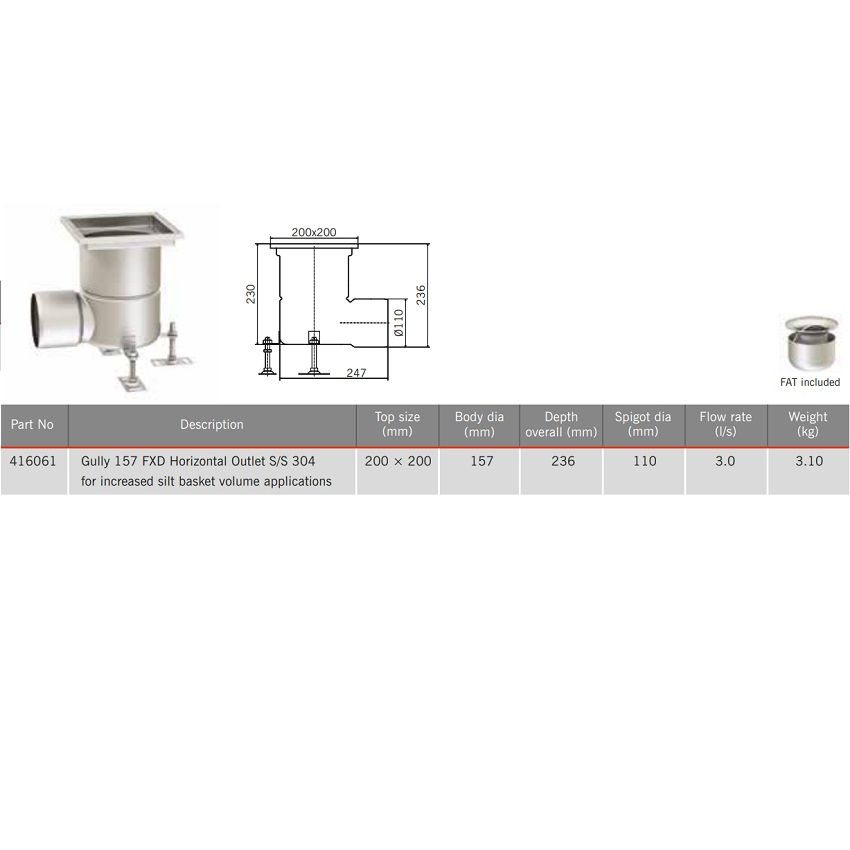 ACO Hygienic Stainless Steel EG150 Gully - Telescopic Horizontal 75mm Outlet