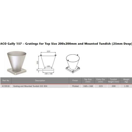 Hygienic Stainless Steel Gully 157 - Fixed Height Horizontal 110mm Outlet Body For Increased Silt Basket, Top size 200mm x 200mm, suitable for cementitious, resin or tiled floors