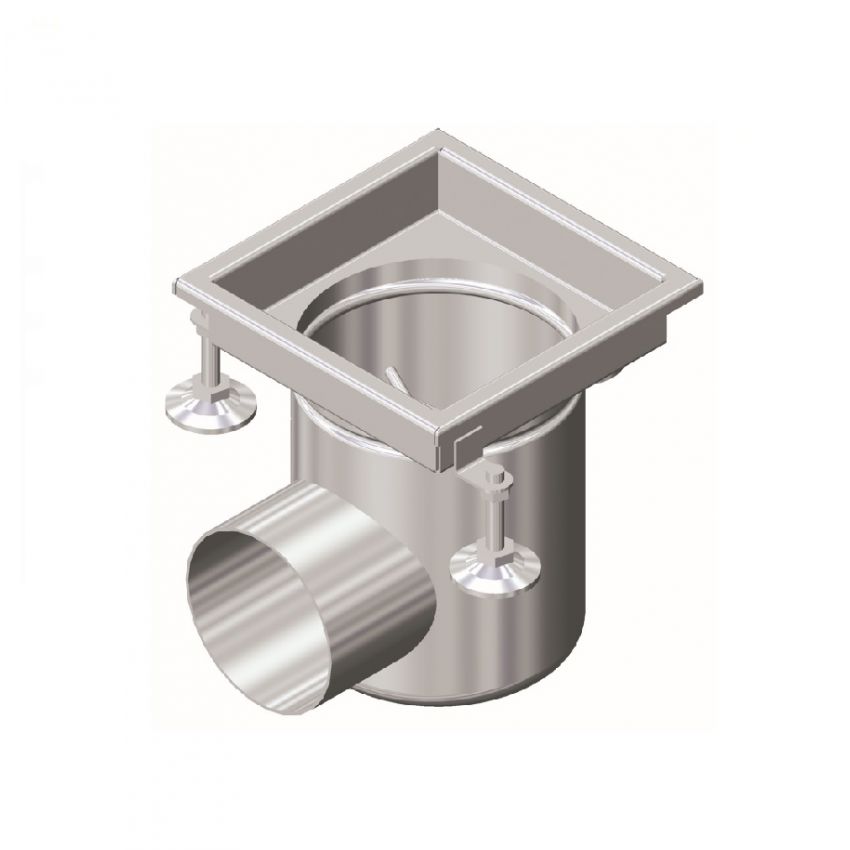 Hygienic Stainless Steel EG150 2 Part Gully System - Telescopic Vertical Outlet With 3 Inlets (Gully Only) 110mm Outlet Body, Top size 150x150mm, suitable for Cementitious/Resin Screed and Tiled Floors