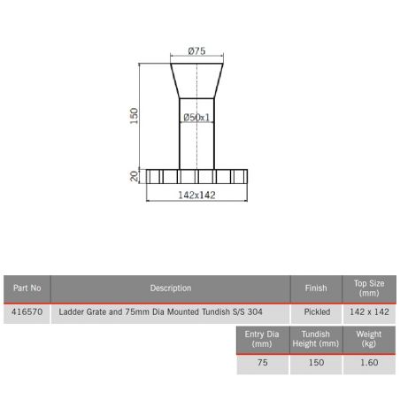 Hygienic Stainless Steel Gully 157 - Fixed Height Vertical Spigot 110mm Outlet Body For Increased Silt Basket, Top size 200mm x 200mm, suitable for cementitious, resin or tiled floors