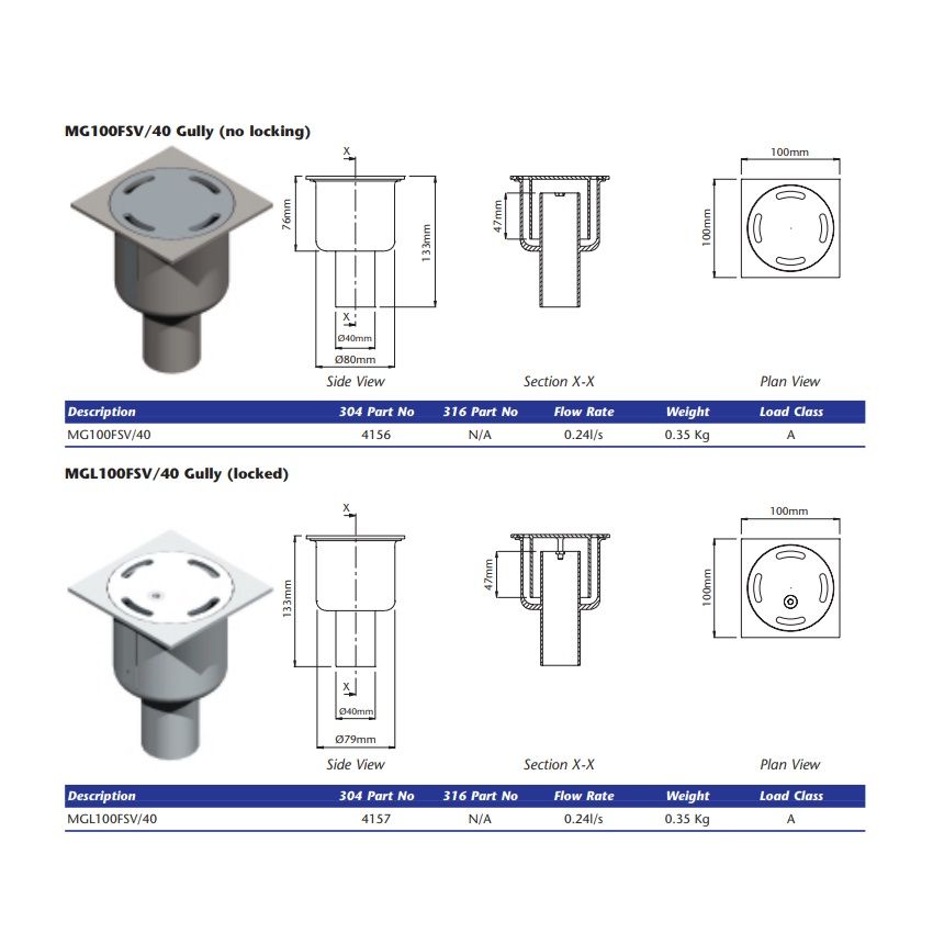 ACO Stainless Steel Micro Gully - FXD Vertical 40mm Outlet (locked) 304