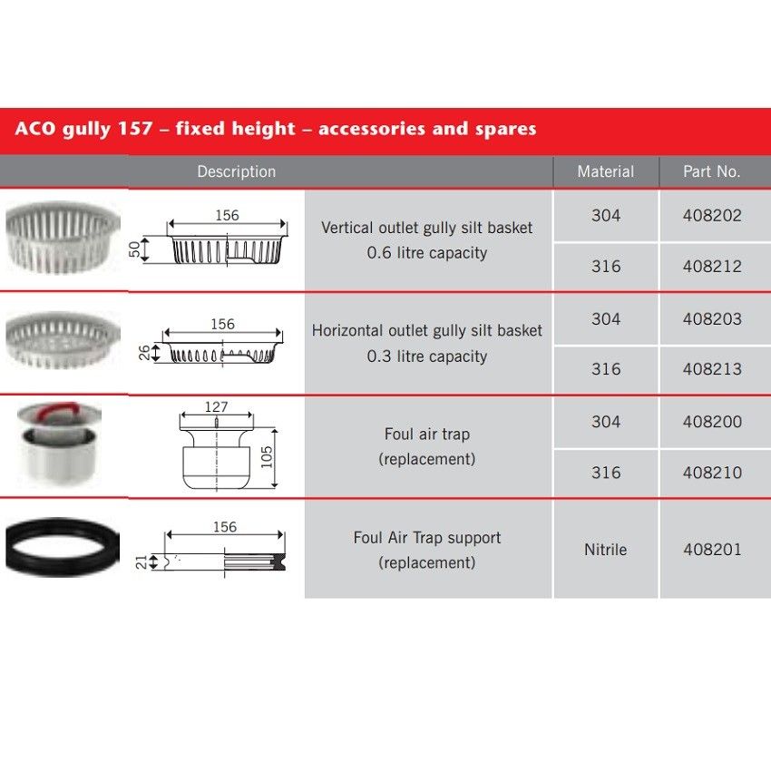 ACO Horizontal outlet gully silt basket for 157 Fixed Outlet Gully, available in 0.3 ltr capacity.