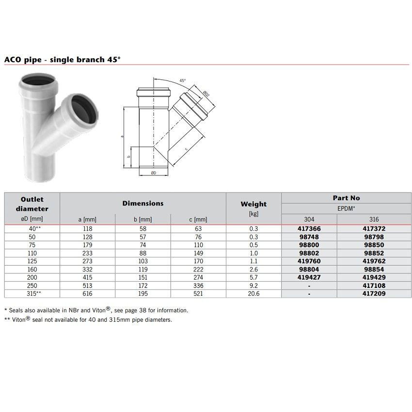 ACO Stainless Steel Socketed 87.5 Degree Pipe Branch Reduction with EPDM Seal