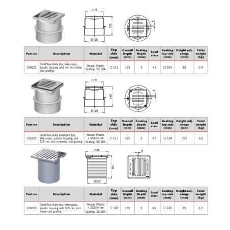 ACO TotalFlow Gully Top Plastic Telescopic with Loose Loose Slot Stainless Steel Grate.