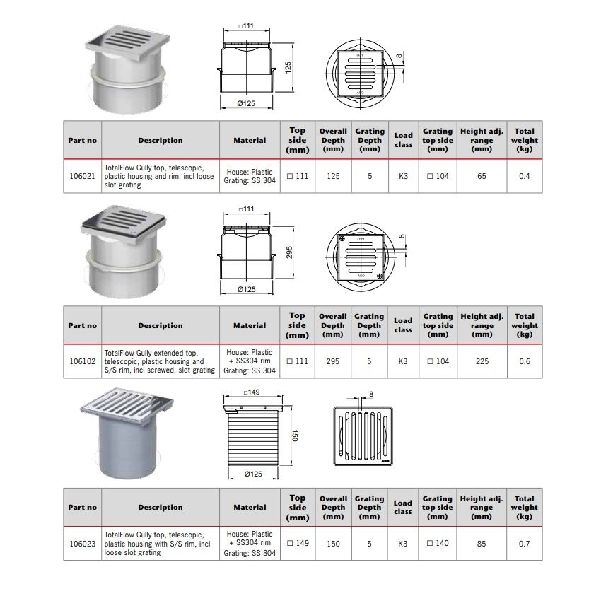ACO TotalFlow Gully Top Plastic Telescopic Extended with Screwed Slot Stainless Steel Grate.