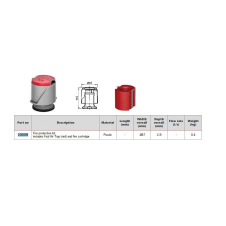 ACO TotalFlow Fire Protection kit, includes foul air trap (red) and fire cartridge.