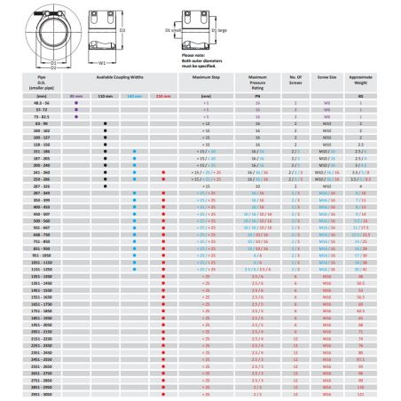 Teekay Axiflex Steeped Couplings, with EPDM Gasket, used to connect plain ended pipes, of different OD's and materials, in pressurised applications above ground (INTERNAL USE ONLY).