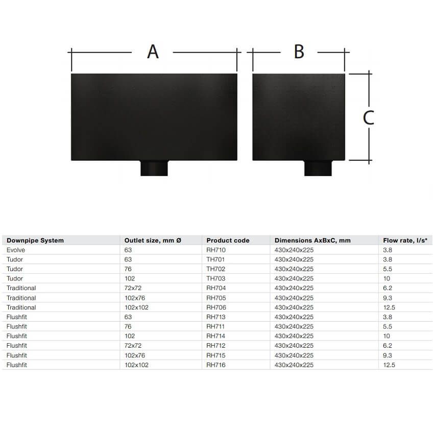 Alutec Flushfit Aluminium Circular Large Contemporary Hopper Head, (A)430mm x (B)240mm x (C)225mm, together with a complete range of fittings. Available in a range of 19 RAL colours, on an estimated 10 working day lead-time.