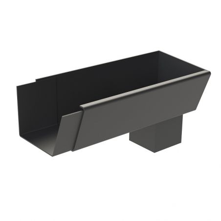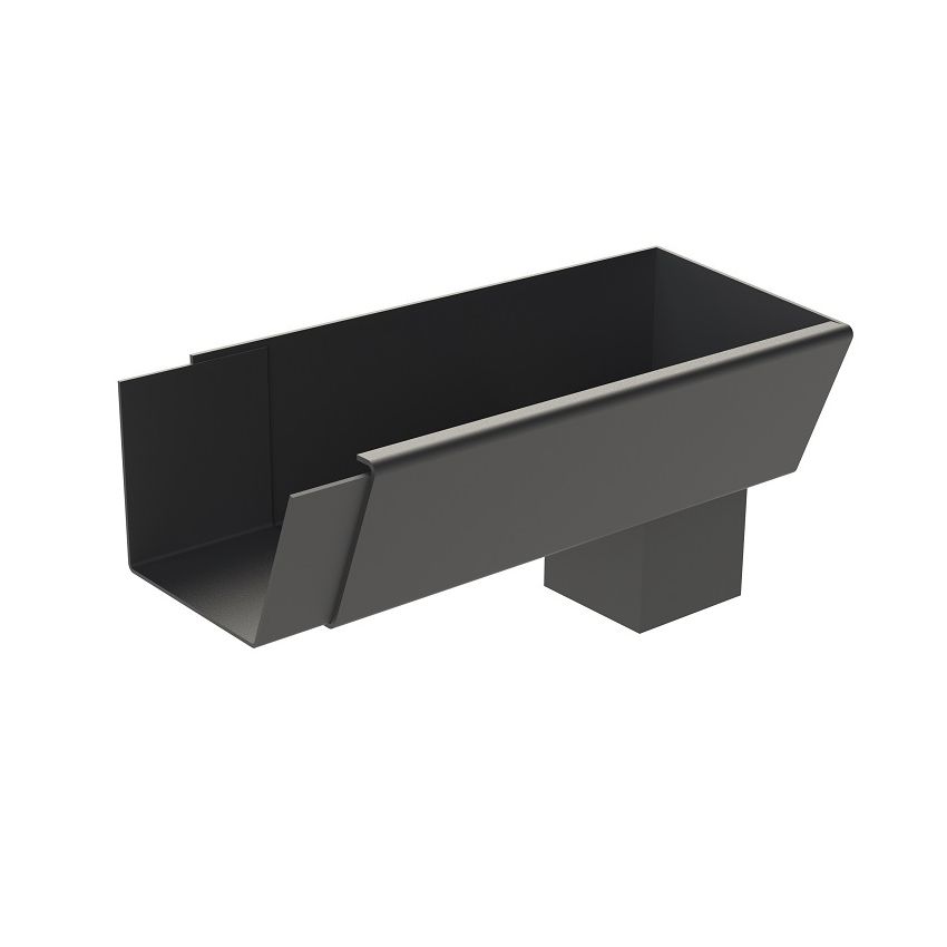 Rainguard Aluminium Raked Stopend Outlet Square/Rect, available in 5 profile widths: 100 x 75mm, 125 x 100mm, 150 x 100mm, 200 x 150mm & 300 x 200mm, for fixing directly back to the building. Outlet sizes available are: 75mm x 75mm, 100mm x 75mm, & 100mm x 100mm.