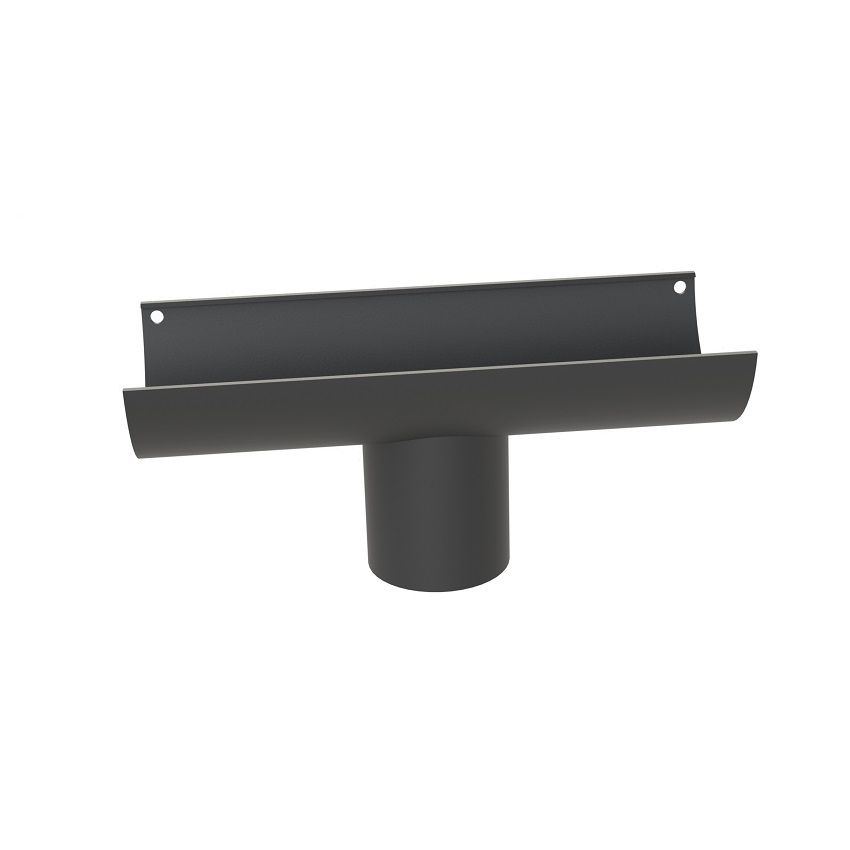 Rainguard Extruded Aluminium XL Half Round Profile Running Outlet Round, 125mm wide, 55mm deep, available in 63mm, 75mm & 100mm diameter outlet, fascia brackets are required for fixing directly back to the building.