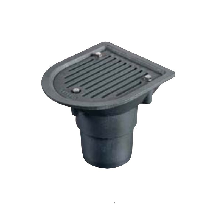 Harmer balcony Outlets can be used in areas with pedestrian or light traffic (excluding forklift) in commercially used premises. This has been designed to act as a drainage grate and clamp as a single one part component that is secured to the outlet body using stainless steel bolts and washers as provided. Two options are available as either a full or aperture grate. The aperture grate allows for 100mm nominal bore pipework from a higher level to finish within the outlet body. The grate can then be removed for inspection and/or maintenance without the need to move the higher level pipework.