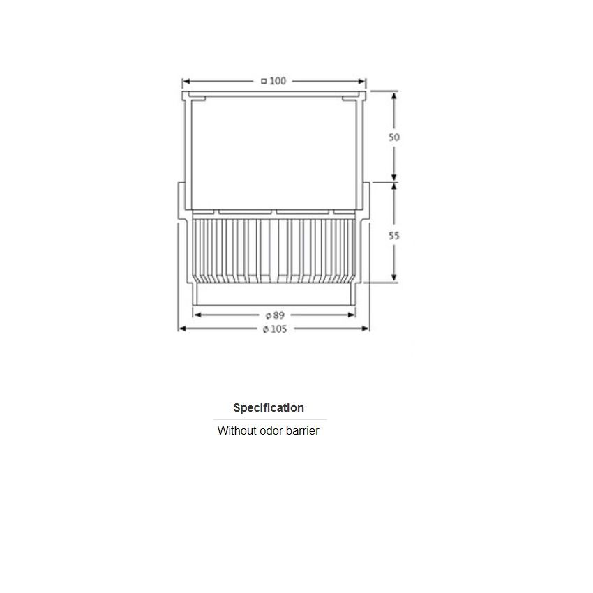 Sita Compact Balcony Outlet Grating, height 60-105mm. Complete with inlet filter grille (ABS) & stainless steel grate (100x100mm) to drain rainwater on two levels.