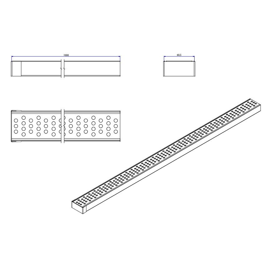 BG Graspointner BG-Flex TM Terrace Channel with Perforated Stainless Steel Grating X 1m Length, 60mm wide x 30mm high.