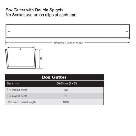 100mm x 75mm Premier Box Cast Iron Gutter x 1.83m (6') available in Standard Grey Metal Primer or finished in Black Semi Gloss - Other Colours available upon request.