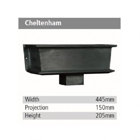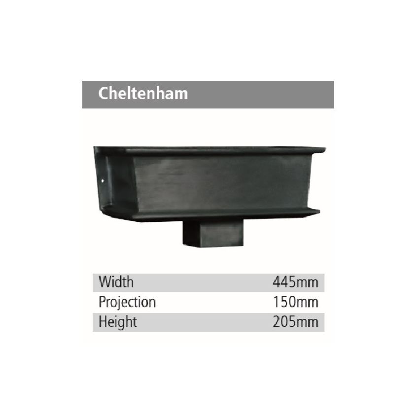 Aluminium Cast Cheltenham Rainwater Head/ Hopper HT 205mm x Width 445m x Depth 150mm to suit 63mm, 75mm, 75mm x 75mm & 75mm x 50mm downpipes only.