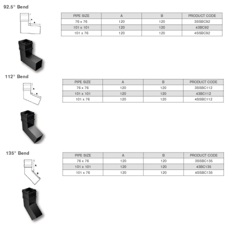 Aluminium Cast Socketed Square 135 Degree Bend, available in 2 sizes, 76x76mm (3x3") and 101x101mm (4x4").