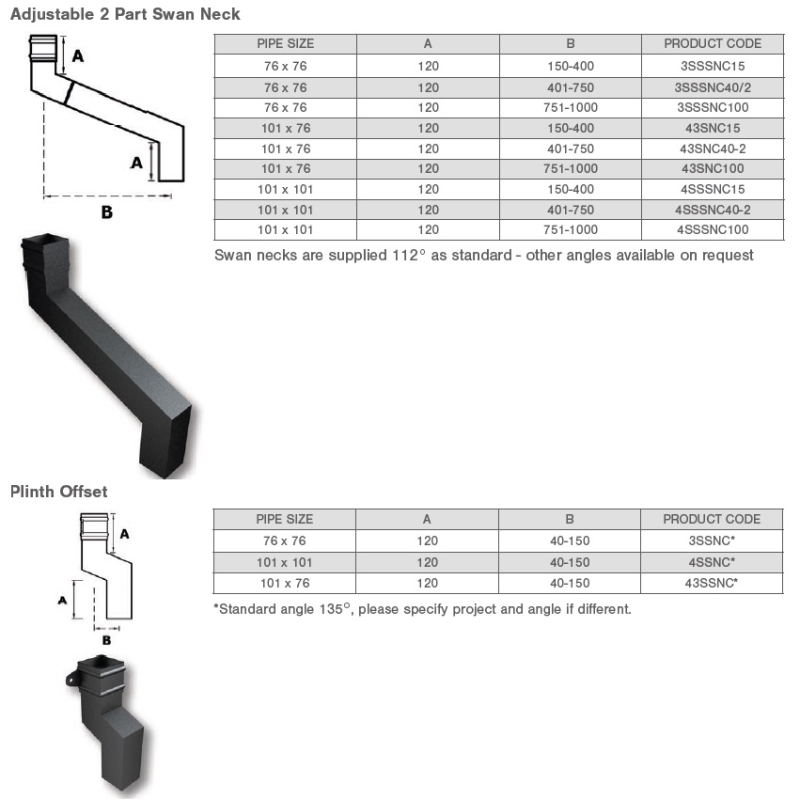 Aluminium Cast Socketed Square 135° Plinth Offset (40 to 150mm), available in 2 sizes, 76x76mm (3x3") and 101x101mm (4x4").