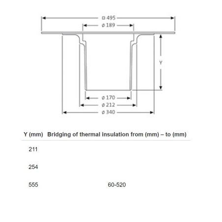 Sita Insulated Extension Unit for installation thickness of 60-520mm; with integrated selected connection sleeve, with dome grate.