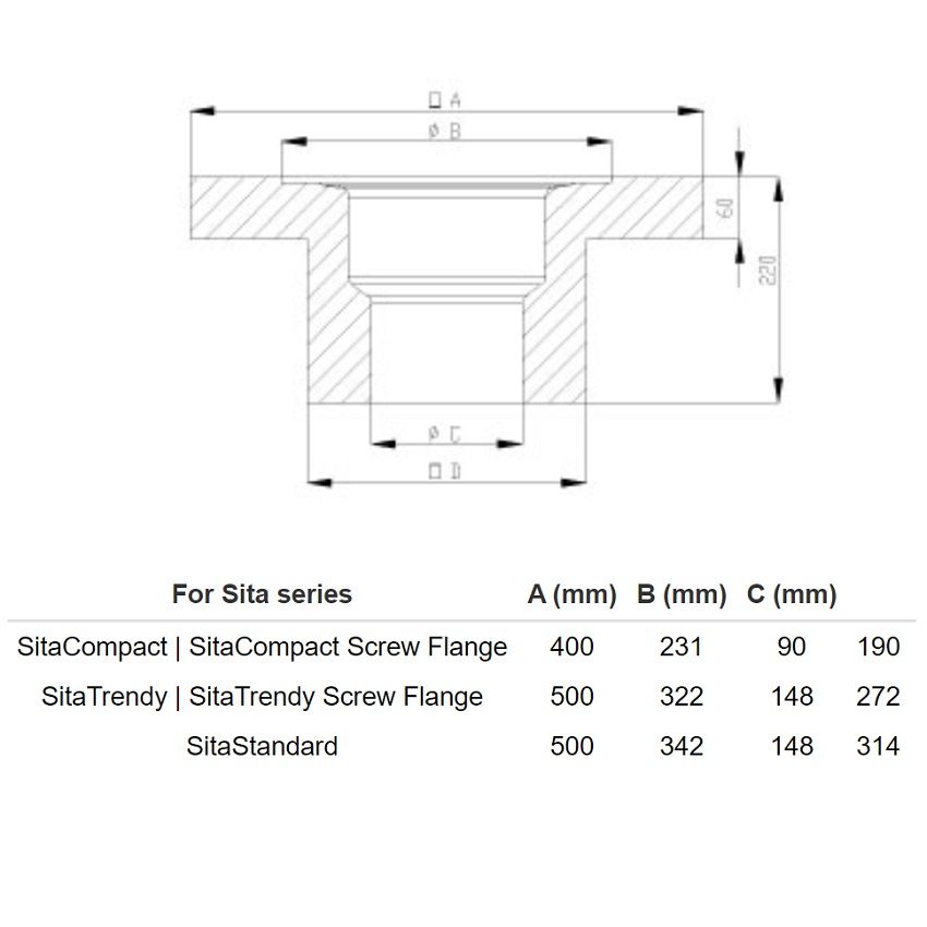 Sita Standard Insulating Body, options for both vertical outlet and extension unit.