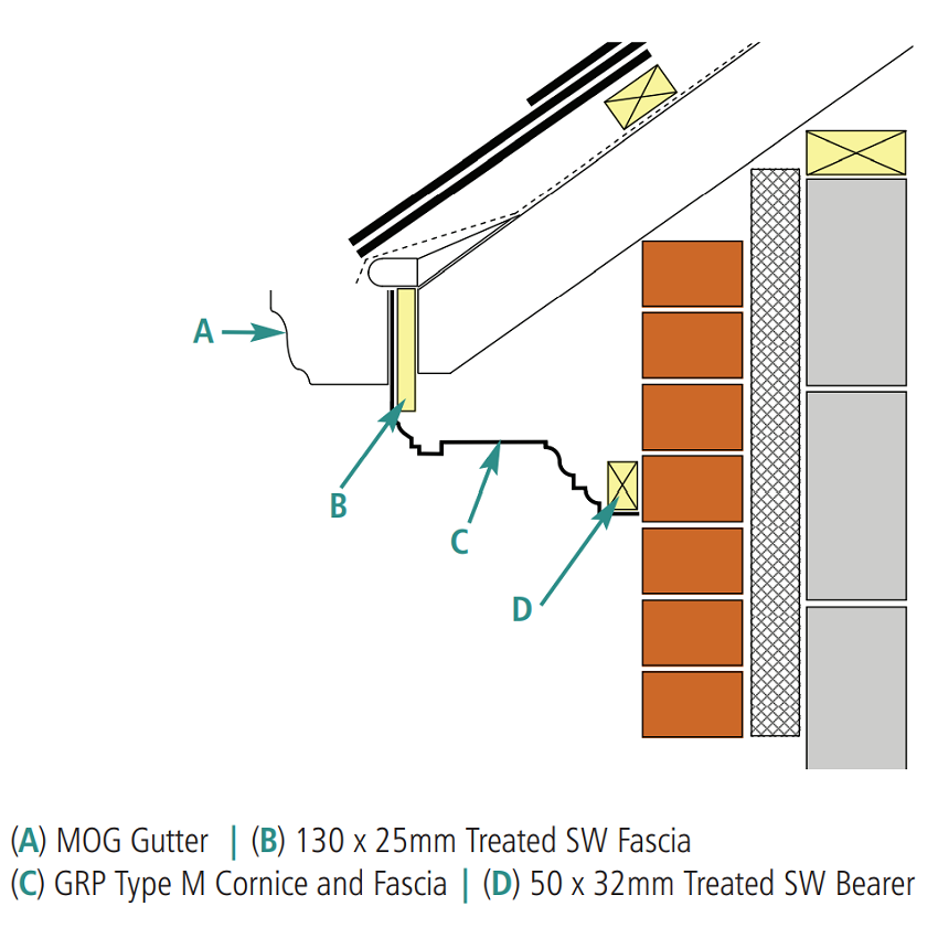 Cornice Fascia Profile M, made from glass reinforced polyester, a material ideal for today’s environment - flexible and lightweight, yet offering heavy duty strength.