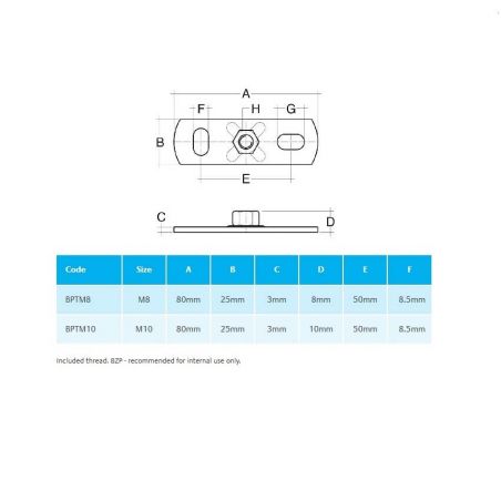 Marley dBlue Backplates; available in M8 & M10 (includes thread; BZP - recommended for internal use only)