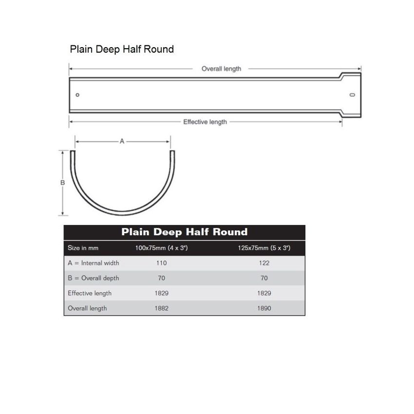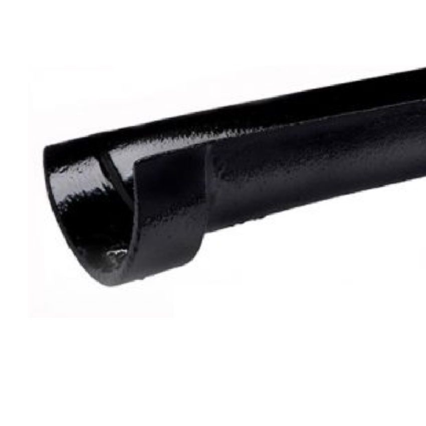Premier Plain Deep Half Round Cast Iron Gutter x 1.83m available in Standard Grey Metal Primer or finished in Black Semi Gloss - Other Colours available upon request. Fascia brackets need to be fitted 150mm from the end then every 900mm.