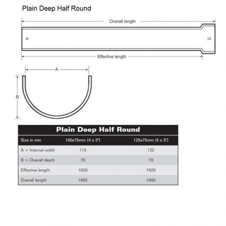 Premier Plain Deep Half Round Cast Iron Gutter x 1.83m available in Standard Grey Metal Primer or finished in Black Semi Gloss - Other Colours available upon request. Fascia brackets need to be fitted 150mm from the end then every 900mm.