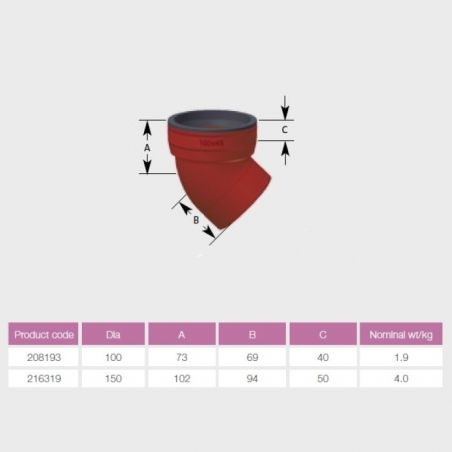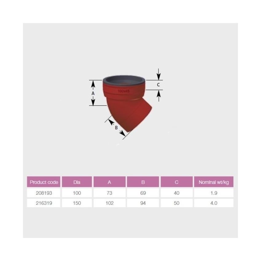 Pam Building Ensign EEZI-FIT Short-radius 45 degree Bends EZ002, Available in 100mm & 150mm Diameter.