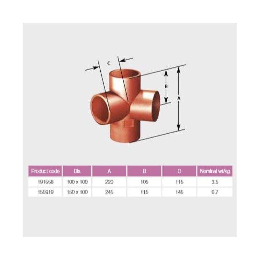 Pam Building Ensign Cast Iron 88 Degree Corner Branch tee EF035, for Above Ground.