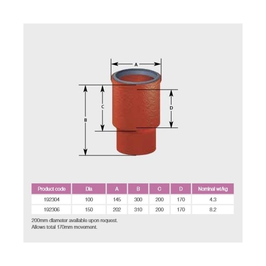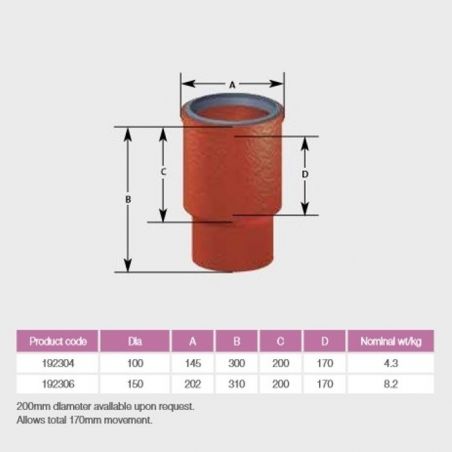 Pam Building Ensign Cast Iron push-fit Movement Connectors (which accomodate for building settlement) EF058, for Above Ground.