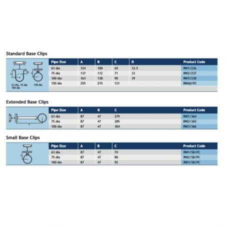 Flushjoint Circular Extruded Aluminium Extended Base Pipe Clip available in 63mm, 75mm & 100mm diameter sizes, together with a complete range of fittings