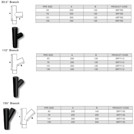 Flush Joint Aluminium Round 135 Degree Branch, available in 4 Diameters, 63mm (2.5"), 76mm (3"), 101mm (4") & 150mm (6").