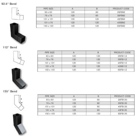 Aluminium Flush Joint Rectangular 92.5 Degree Bend, available in 1 size; 101 x 76mm (4 x 3").