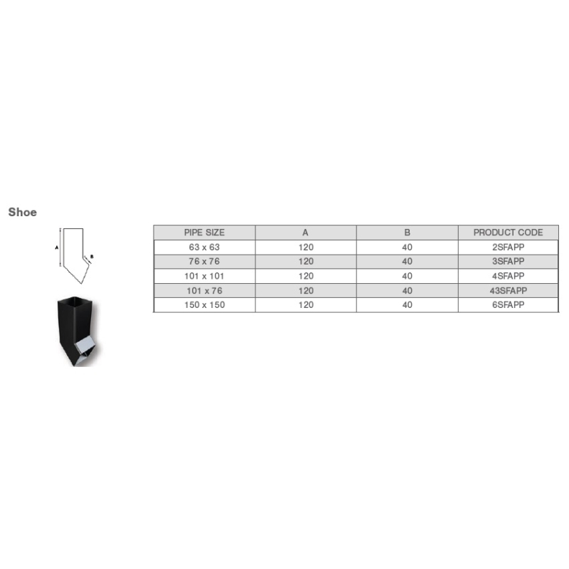 Aluminium Flush Joint Rectangular Shoe, available in 1 size; 101 x 76mm (4 x 3").