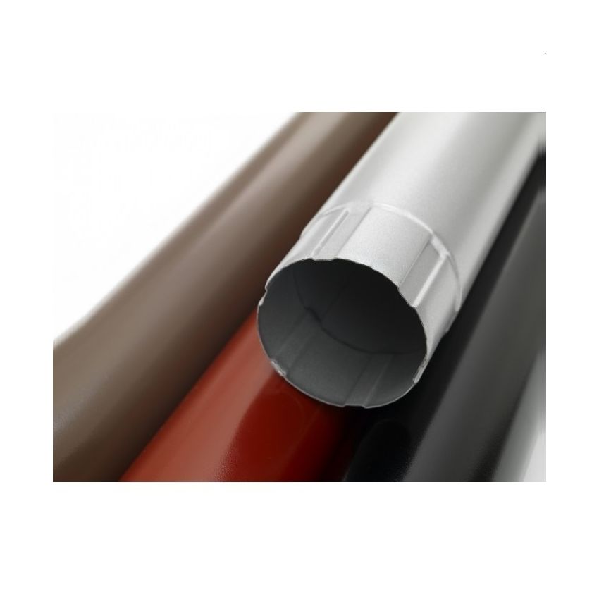 Round Steel Downpipe x 2.5m available in Magnesium Coated Galvanised (Magestic). Plus a choice of eleven high-build polyester paint finishes. Pipe clip spacings recommended at 1.5m intervals. More information available at www.steelgutteringcentre.co.uk