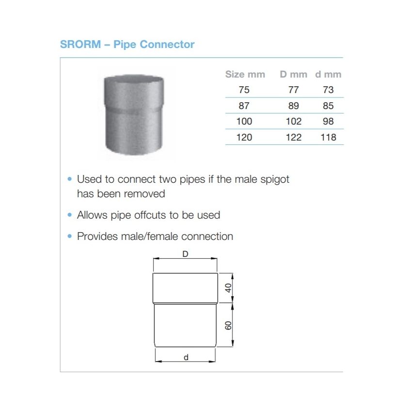 Round Steel Downpipe Connector available in Magnesium Coated Galvanised (Magestic). Plus a choice of eleven high-build polyester paint finishes. More information available at www.steelgutteringcentre.co.uk