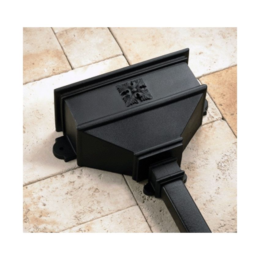 Cascade Cast Iron Style Long Hopper with Four Leaf Square available in Classic Black, Oxford Blue, Olive Green, Graphite Grey, Sandstone and Porcelain White.