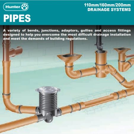 Hunter manufacture a variety of underground drainage bends, junctions, adopters, gullies and access fittings to help you overcome the most difficult drainage installations and meet the demands of the building regulations.