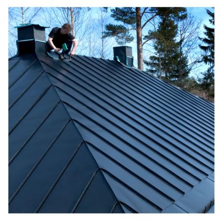 With Lindab Coverline you get a roof that looks like a classic seam roof. You do not need any special abilities; it takes little time to install the roof profiles. Lindab SRP 25N is recommended down to a 12° pitched roof, will fit most types of roof and is particularly suitable for roofs with few obstacles.
