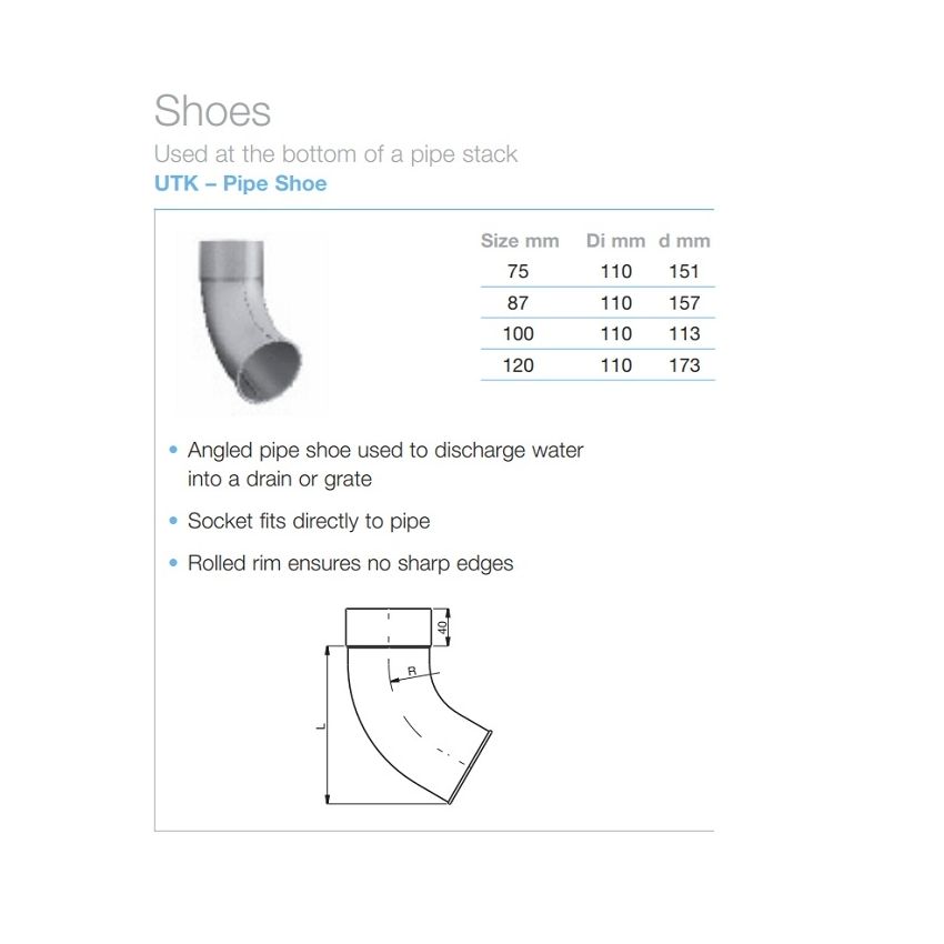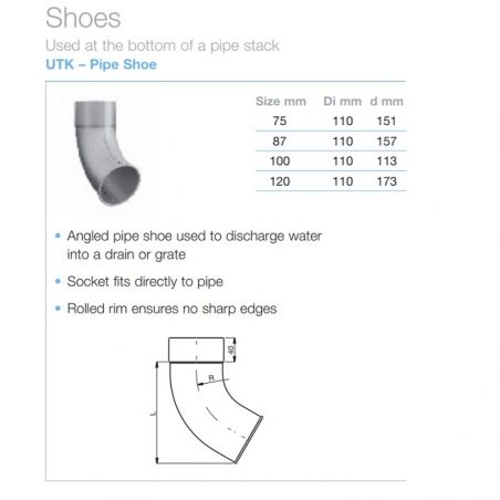 Round Steel Downpipe Shoe available in Magnesium Coated Galvanised (Magestic). Plus a choice of eleven high-build polyester paint finishes. More information available at www.steelgutteringcentre.co.uk