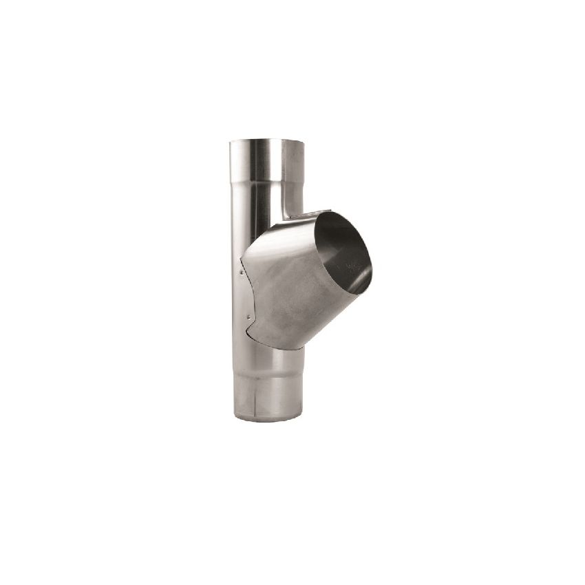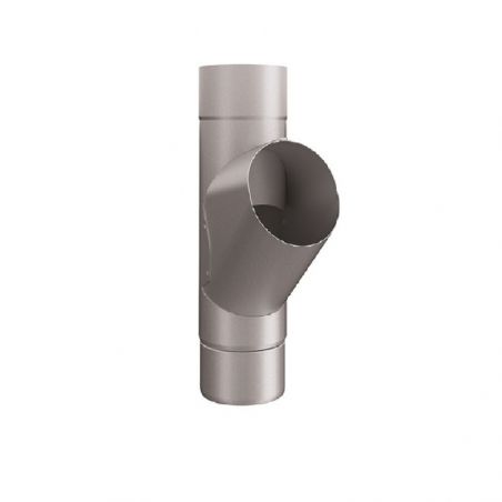 Round Steel Downpipe Branch available in Magnesium Coated Galvanised (Magestic).  Plus a choice of eleven high-build polyester paint finishes. More information available at www.steelgutteringcentre.co.uk