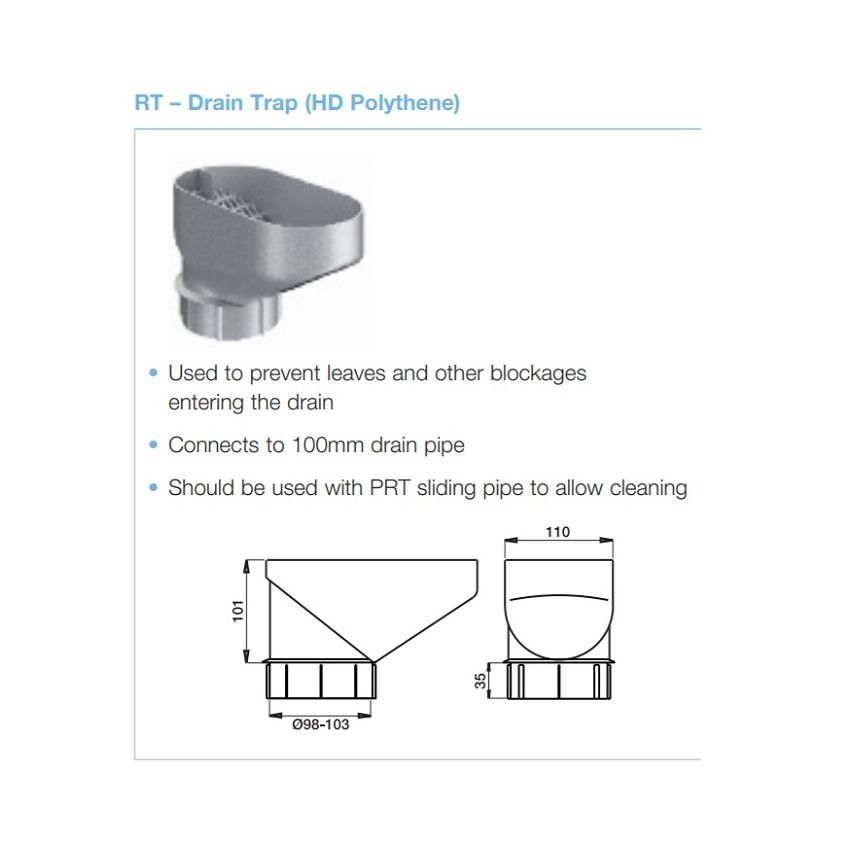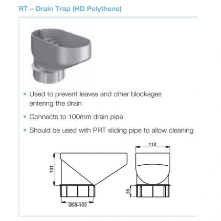 Round Steel Downpipe Drain Trap including Leaf Strainer (HD Polythene)