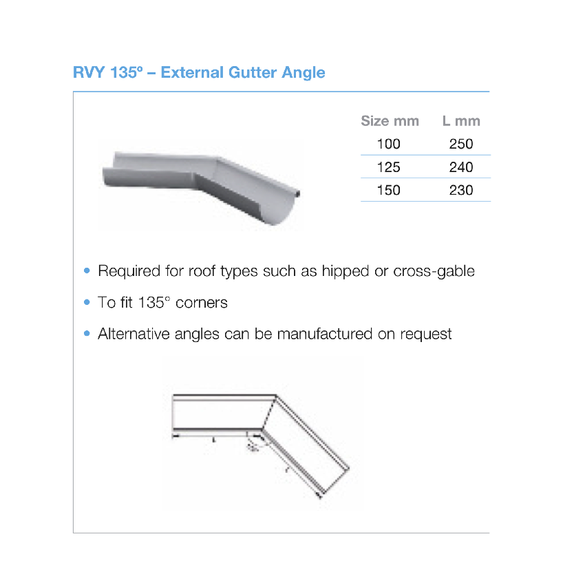 Lindab Magestic Galvanised Steel Half Round Gutter Angle External 90 degrees. 2 Gutter Joints are required per angle to joint back into the gutter. More information available at www.steelgutteringcentre.co.uk