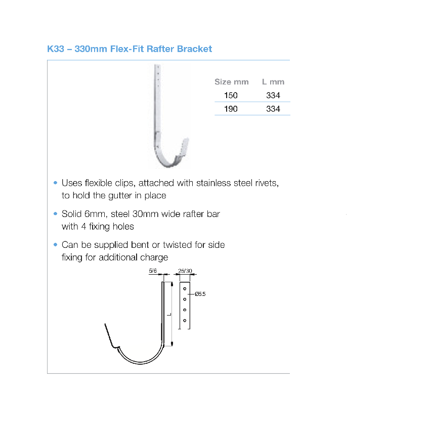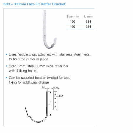 Lindab Magestic Galvanised Steel Flexi Fit Rafter Bracket 330mm for 150mm & 190mm Gutters Only. Spacings are recommended at 800mm intervals. More information available at www.steelgutteringcentre.co.uk