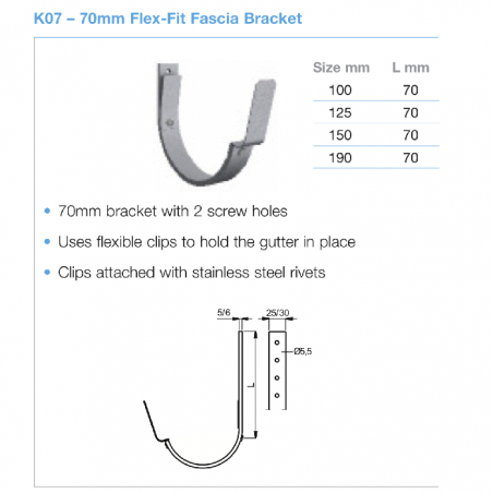 Lindab Magestic Galvanised Flexi Fit Fascia Bracket 70mm. Spacings are recommended at 800mm intervals. More information available at www.steelgutteringcentre.co.uk