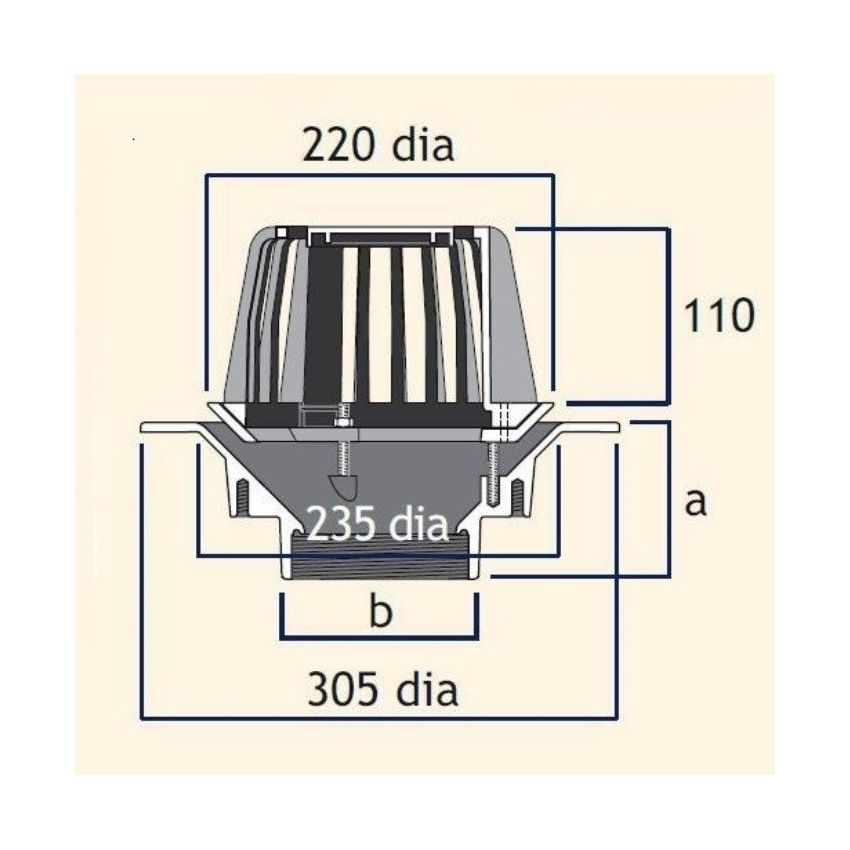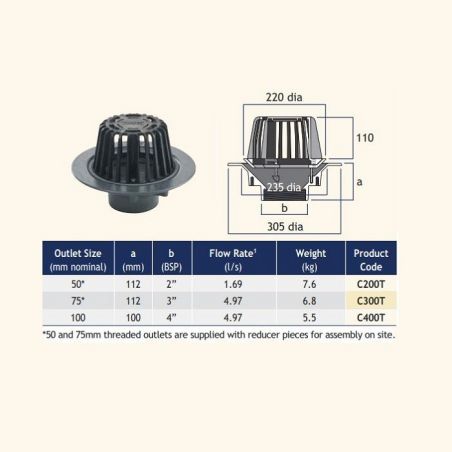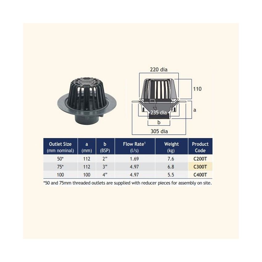 Harmer Roof Cast Iron Medium Sump Horizontal Threaded Outlet Double Flanged
